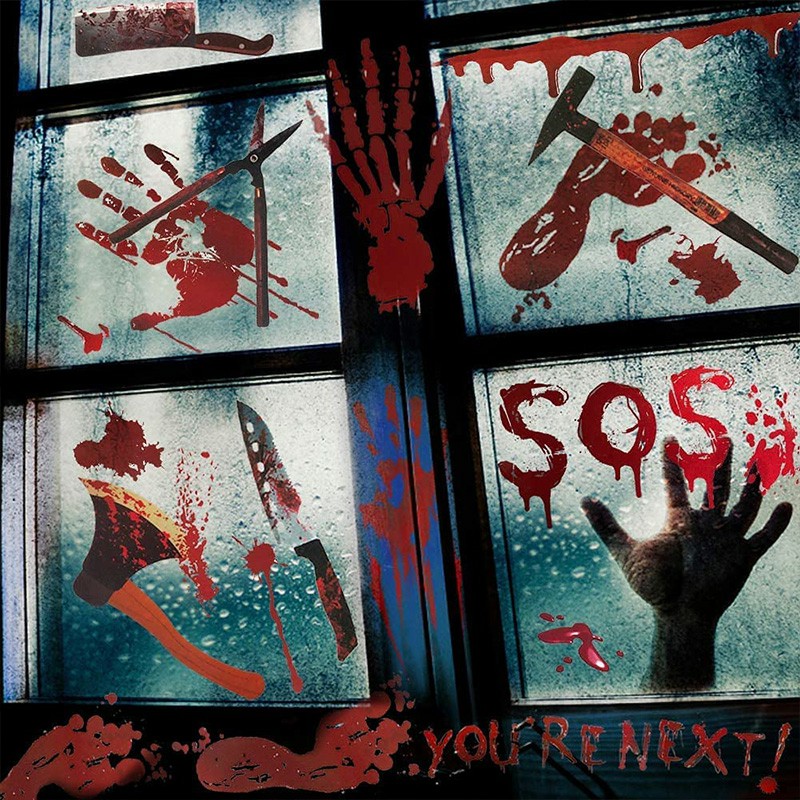 12 Sheets Halloween horrifying Bloody Stickers Bloody Handprint Window Decoration.