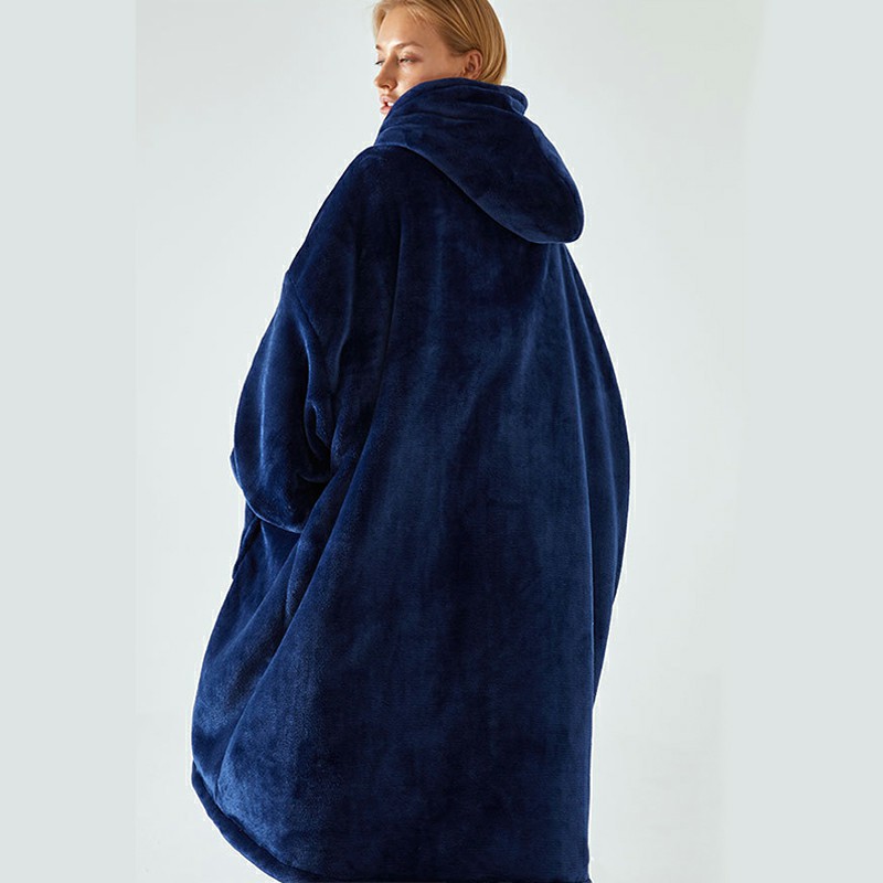 Super Wide Loose Cozy Oversized Wearable Hoodie Sweatshirt Blanket for Adults Men Women – Blue
